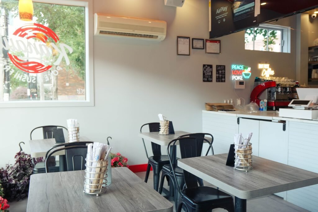 Profitez de notre espace intérieur chaleureux avec des tables confortables pour savourer vos poke bowls et sushis dans une ambiance décontractée. Parfait pour un repas entre amis, en famille ou un lunch d’affaires rapide.